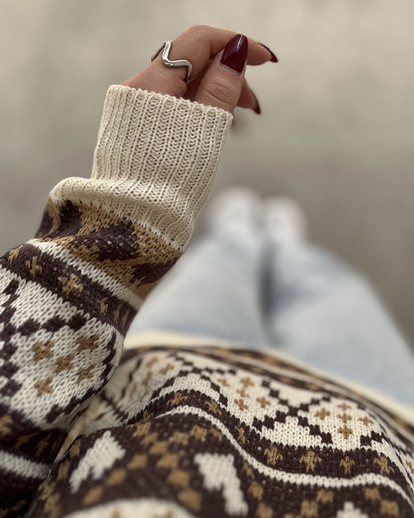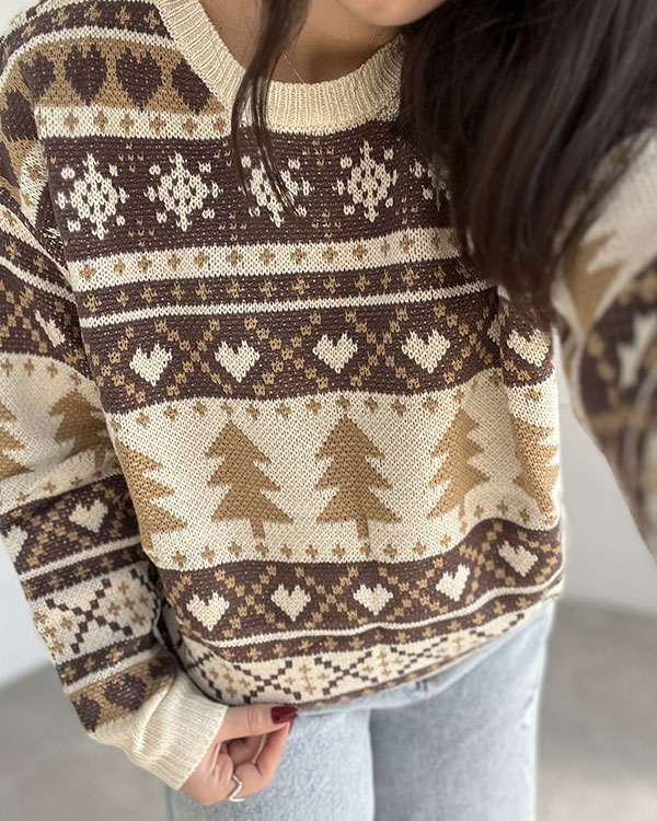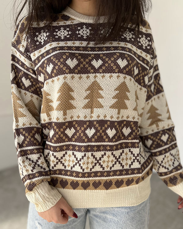 در طراحی این پلیور از الگوهای الهامگرفته از تمهای کلاسیک کریسمس استفاده شده است؛ طرحهایی مانند گوزن، برف، دانههای ستارهای و خطوط هندسی هماهنگ که حس جشن و سرزندگی را منتقل میکنند. ترکیب رنگهای قرمز، سفید، سبز و خاکستری، ظاهری خاص و جذاب به آن داده است. این بافت بهخوبی با شلوار جین، بوتهای زمستانی و اکسسوریهای فانتزی ست میشود. اگر به دنبال بافت دخترانه متفاوتی هستید که هم شیک باشد و هم راحت، پلیور بافت کریسمسی دقیقاً همان چیزی است که دنبالش هستید.