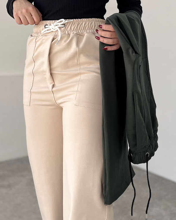 یکی از ویژگیهای مهم این مدل، وجود جیبهای کاربردی در دو طرف شلوار است که علاوه بر ظاهر اسپرت، کارایی بالایی نیز دارد. میتوانید گوشی موبایل، کلید یا وسایل کوچک خود را در آن قرار دهید بدون اینکه نیازی به کیف داشته باشید. طراحی کمر کشدار و گاهی همراه با بند تنظیم نیز باعث میشود این مدل برای استفاده روزمره بسیار راحت باشد.