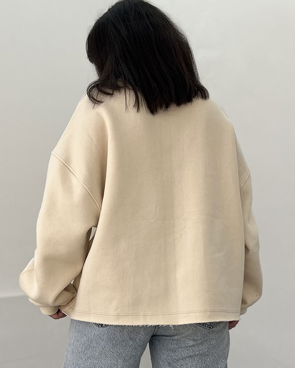از نظر اندازه، این محصول دارای قد ۶۰ سانتیمتر است که یک قد استاندارد و مناسب برای استایلهای کژوال محسوب میشود. همچنین، دور سینه ۱۳۲ سانتیمتری آن طراحی باکسی را تکمیل میکند و به شما ظاهری آزاد و راحت میبخشد. یکی دیگر از نکات قابل توجه در طراحی این دورسی، قد آستین از یقه ۸۳ سانتیمتر است که پوشش کامل و راحتی را برای دستان شما فراهم میکند. این ویژگی مخصوصاً در روزهای خنکتر بسیار کاربردی است، زیرا مانع نفوذ سرما میشود و حس گرما و آسایش را برایتان به همراه دارد.