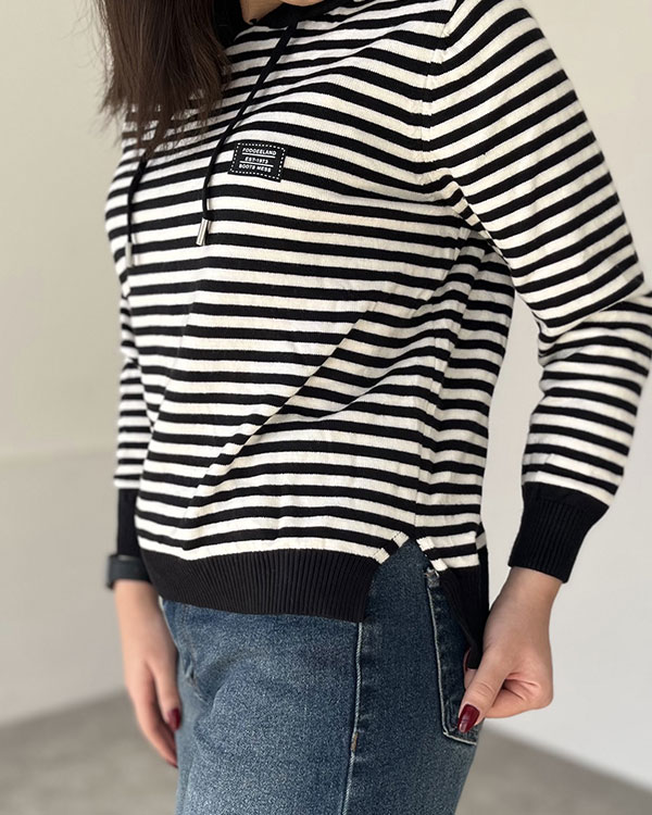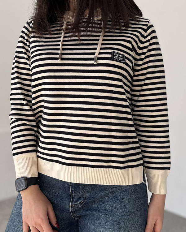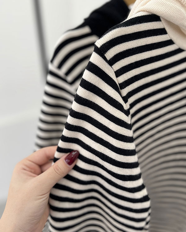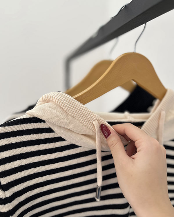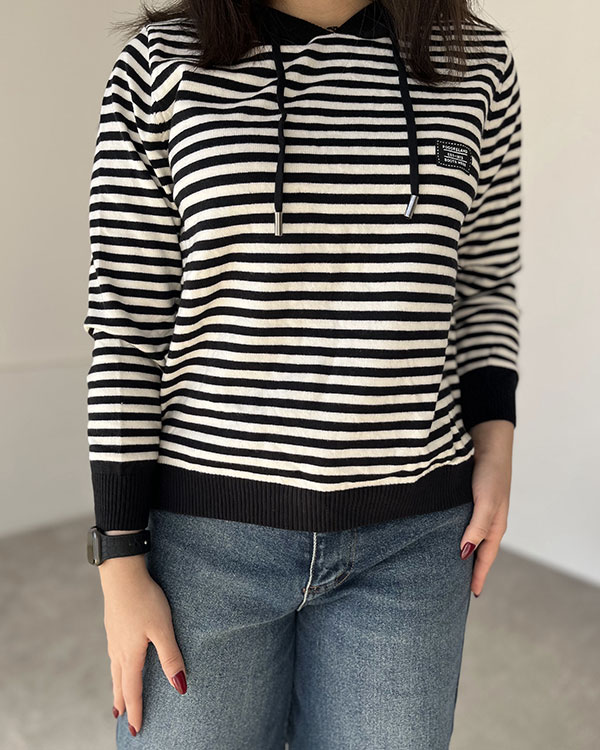 از نظر ظاهری، ترکیب رنگ مشکی و کرمی در طراحی راهراه این هودی باعث شده تا جلوهای چشمنواز و مدرن داشته باشد. این ترکیب رنگ، استایلی مینیمال و در عین حال پرجلوه میسازد که برای موقعیتهای مختلف مثل رفتوآمد روزانه، دانشگاه یا حتی دورهمیهای دوستانه کاملاً مناسب است. اگر به دنبال لباسهای بافت دخترانه با ظاهر اسپرت اما شیک هستید، این مدل از بهترین انتخابهاست.