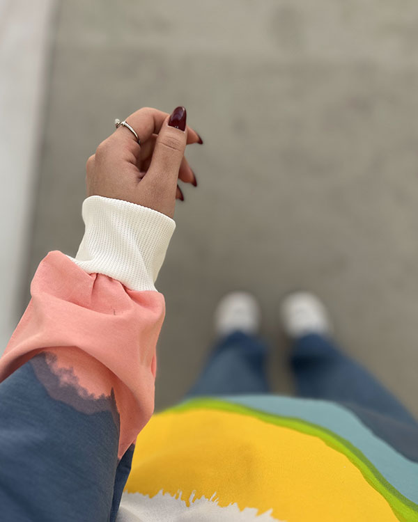 از نظر استایل، هودی آبرنگی برای دخترانی که به دنبال پوششی راحت، شیک و متفاوت هستند، یک انتخاب فوقالعاده محسوب میشود. این هودی را میتوان به راحتی با شلوار جین، لگ یا شلوارهای اسلش ست کرد و یک استایل اسپرت و مدرن ساخت. همچنین رنگ سفید و صورتی آن، دست شما را برای انتخاب اکسسوریها و کفشهای رنگی باز میگذارد. به عنوان مثال، میتوانید با کتانی سفید یا صورتی این هودی را ست کنید تا یک استایل دخترانه کامل داشته باشید.